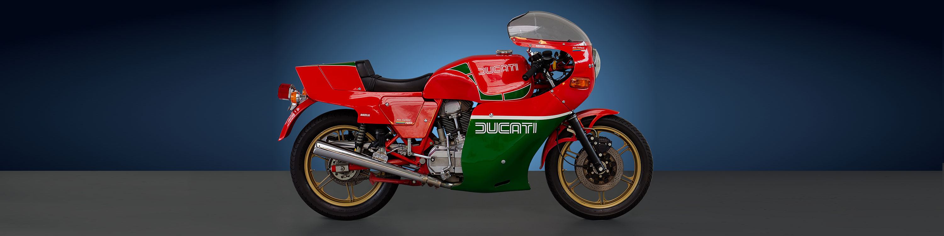 Die Mike HailwoodTM Replica ist die neueste Weiterentwicklung der bekannten 900 Super Sport. Produziert wurde sie von Ducati, um den Sieg der Tourist Trophy 1978 zu feiern. Dieses für den harten Ducatisten-Kern kreierte Motorrad verfügte noch nicht einmal über eine elektrische Zündung. Sie war das wahre Motorrad für waschechte Biker – imposant und majestätisch.